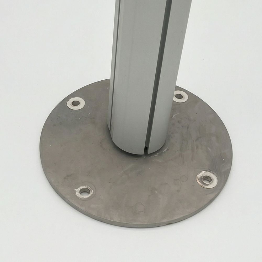 Réalisée à partir d’une découpe laser circulaire de forte épaisseur, la platine assure une excellente répartition des efforts et une stabilité renforcée au sol.